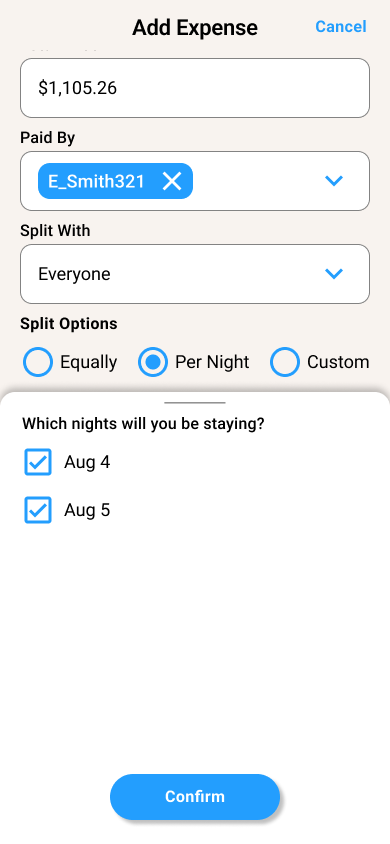 Expense division: Created a separation for all group expenses and personal expenses that could be easily accessed.