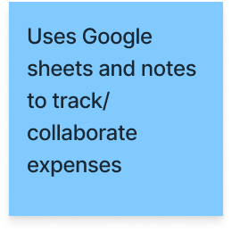 5/5 participants track their expenses using a combination of methods; keeping receipts, taking notes, saving emails, and using apps like Splitwise, Google Sheets, and Venmo